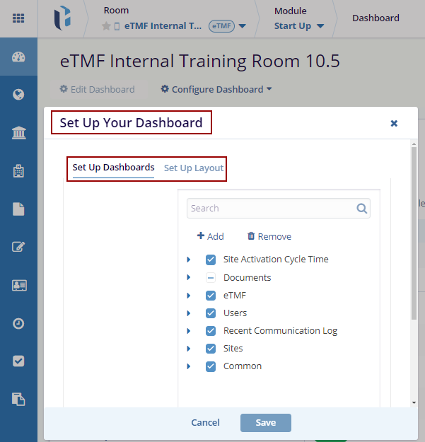 • Set Up Dashboards: For selecting or adding widgets.