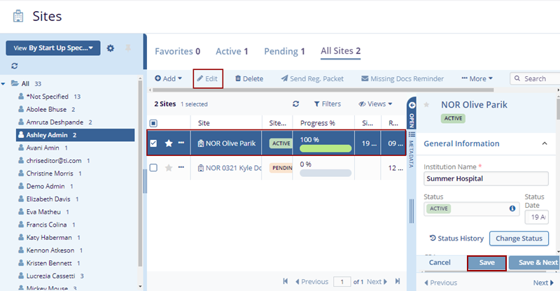 - Make edits to the site details and click on the Save button. The changes get