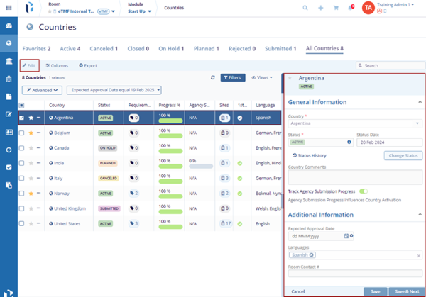 Edit the information as per the requirement and click Save to save the edited information. However, the Save & Next button directs the user to the next country.
