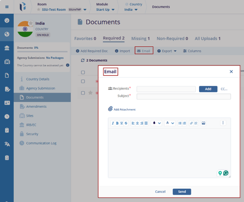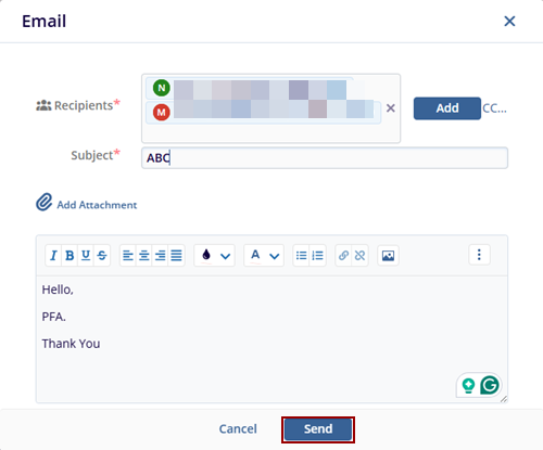 - The selected recipients were added to the Recipients field in the Email pop-up window. Write the mail in the body text box provided below.
