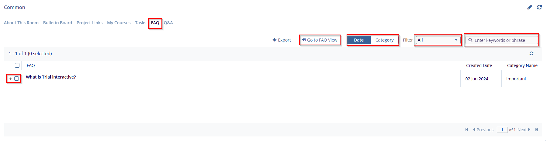 - Navigate to the Common dashboard, and click on the FAQ tab.
