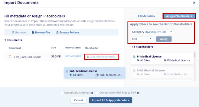 3. Apply the relevant filters within the Assign Placeholders tab.