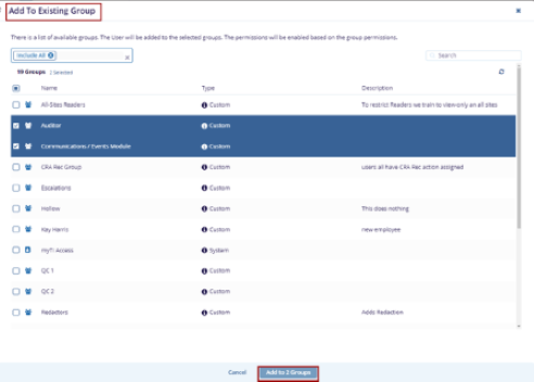 - Select the required groups, click Add to Groups, and view the selected groups on the Groups tab.