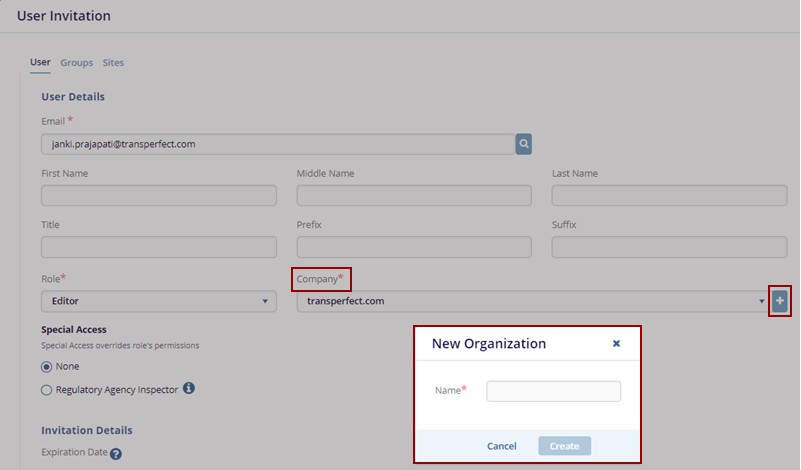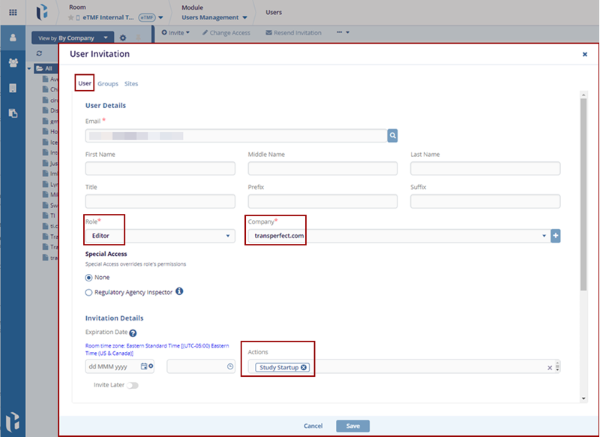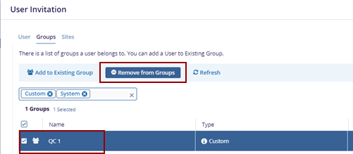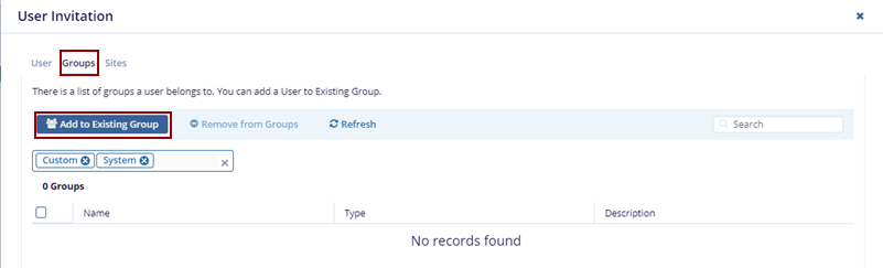 - Click the Groups tab on the User Invitation form.