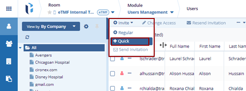 Click on the +Invite button and select the +Quick option.
