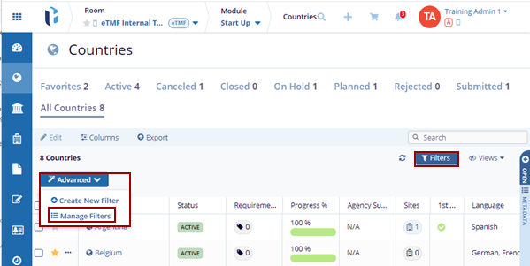 8. Click the Select or Select and Save buttons to apply the filters to the Countries.