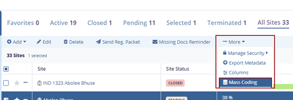 To mass code sites, follow the steps below.
