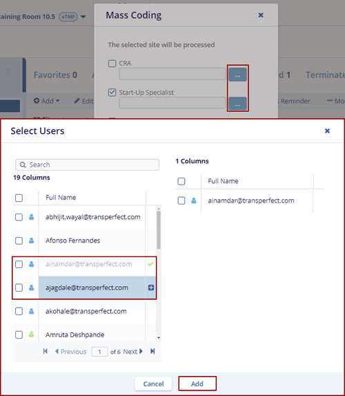 - Click the Add button displayed at the bottom of the Select Users window.