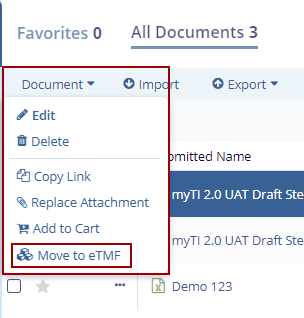 - Select the Move to eTMF option.