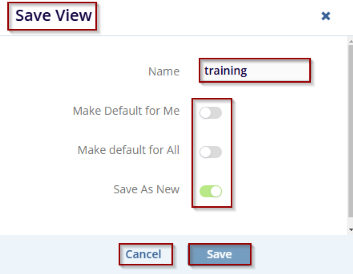 - Click the Save button to save the current view, If the user decides not to save the view, click the Cancel button to discard changes.
