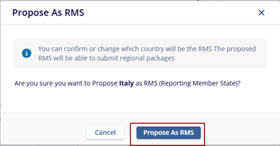 Note: Once the selected country has the status Proposed As RMS, then the user can submit the Regional Packages.