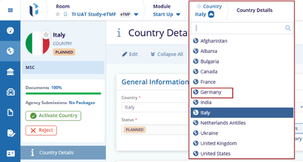 - Navigate back to the Country drop-down in the breadcrumbs and