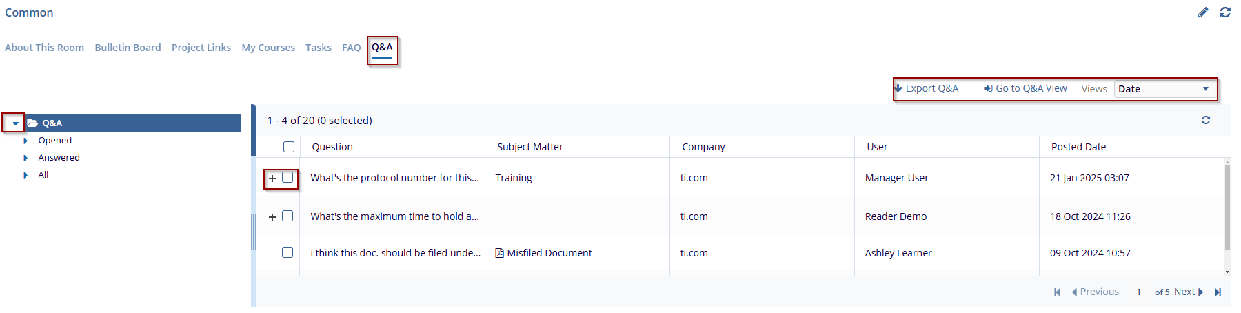 - Navigate to the Common dashboard, and click on the Q&A tab.