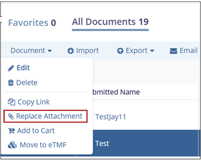 1. Select the checkbox of the document that needs the attachment replaced.