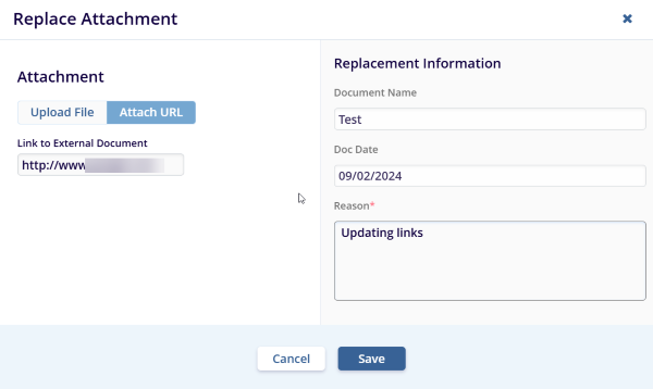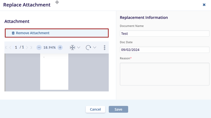 4. The Replace Attachment popup window is displayed.