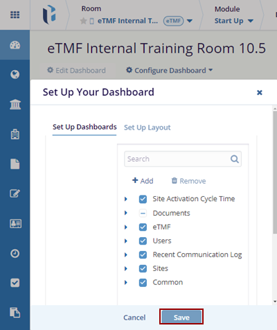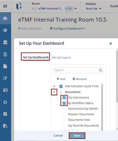 1. On the Set Up Your Dashboard window, the Set Up Dashboard option is displayed by default. Expand the fields using the arrow and select the required checkbox.
