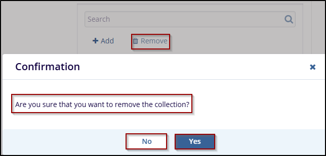 6. Click Yes to confirm and remove the collection, or click No to cancel the action and keep the collection.