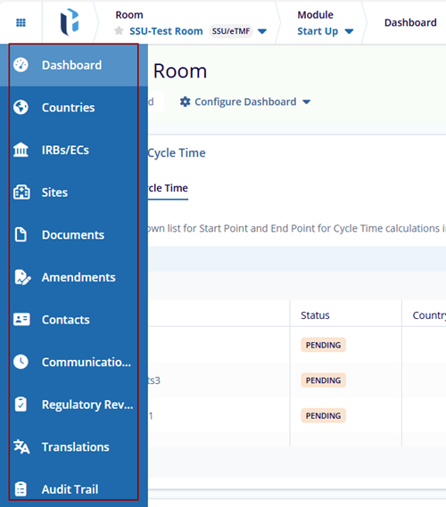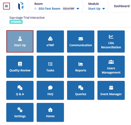Once the basic settings and contacts are configured for Study Start-Up, users can now move forward to operate the module.