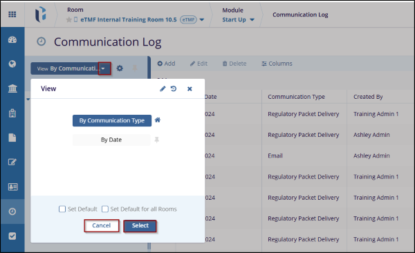 The View Dropdown allows users to select options based on requirements such as By Communication, and By Date.