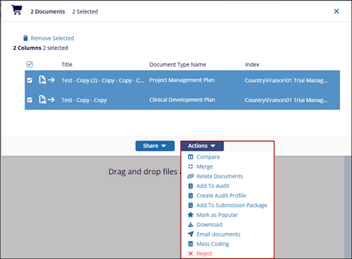The Actions menu provides a set of bulk operations that can be performed on the selected