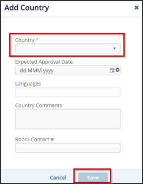 - Once all necessary information is entered, click on the Save button to add the country to the list.