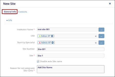 - Site*: Mandatorily enter the site name if Disable auto Site Name is disabled.