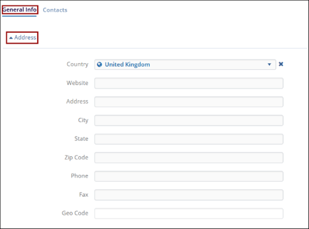 - Address: Add information to the following fields.