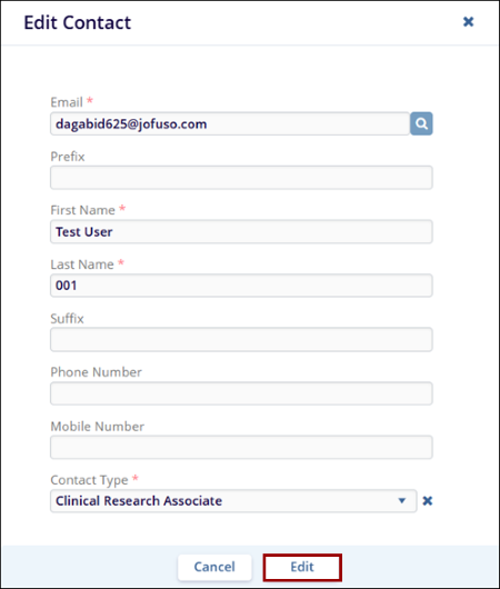 - On the Edit Contacts screen, make the necessary changes.