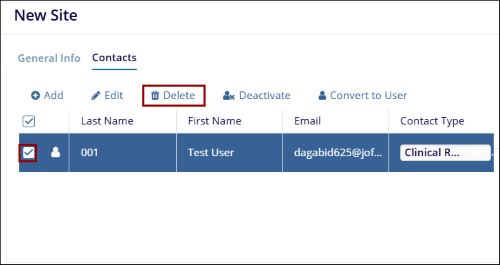 - On the Convert Select Site Contacts screen, provide a role and the