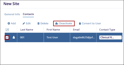 - De-activate Contact: To deactivate a contact, follow the steps