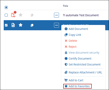 - Select a document and click on the Add to Favorites button from the document