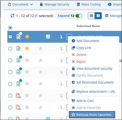 - Click the Star icon on the document line in the grid.