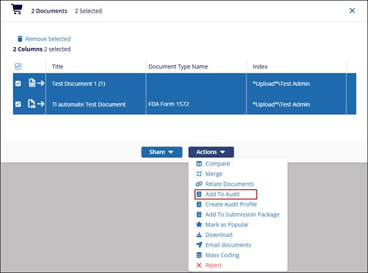- On the Select Audit window, select the Add To Audit documents to.