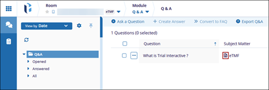 - The question is displayed in the Q&A list without the document icon.