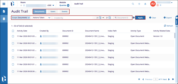 Users can access the Audit Trail by selecting the tab from the left-hand navigation pane.
