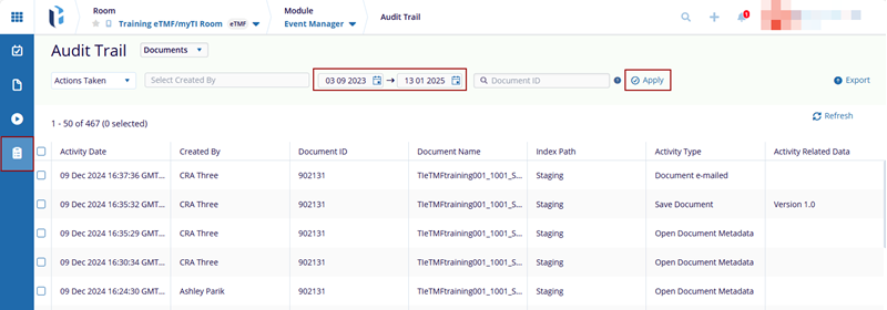 Refer to the Audit Trail from the eTMF Module for a more detailed description of these options