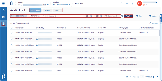 Users can access the Audit Trail by selecting the tab from the left-hand navigation pane.