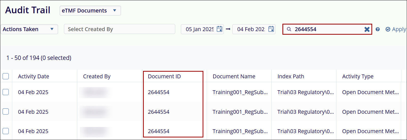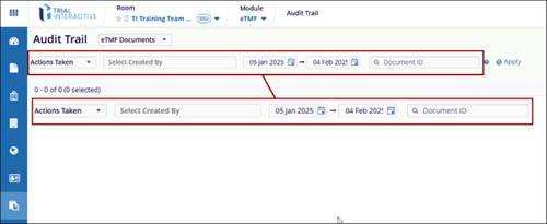Note: The Document ID Filter is applicable only for eTMF Documents, Start-Up Documents and Start-Up and eTMF Documents.