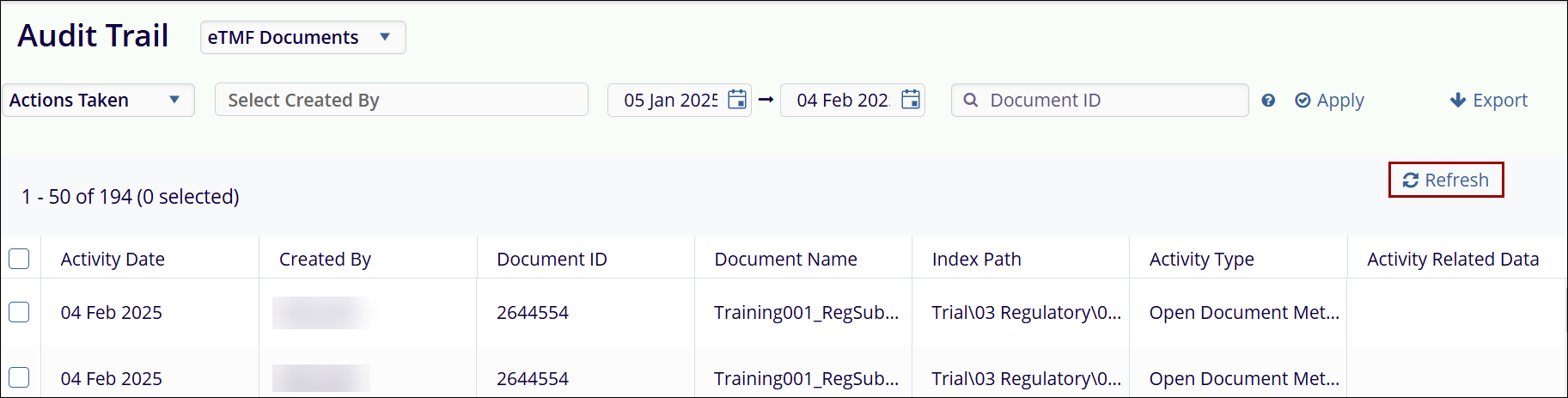 the Refresh button to update the audit trail records as per the newly applied