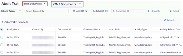 User Interface for eTMF Documents: When the audit trail for eTMF documents is
