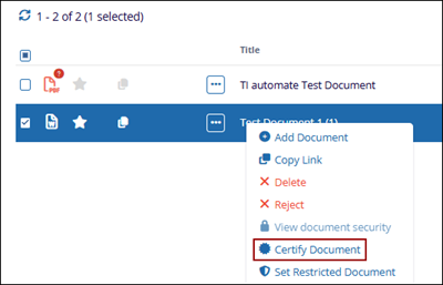 - Select a document and click on the Certify Document button from the document