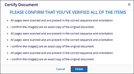 - Read the criteria and press Finish if the document meets all expectations.