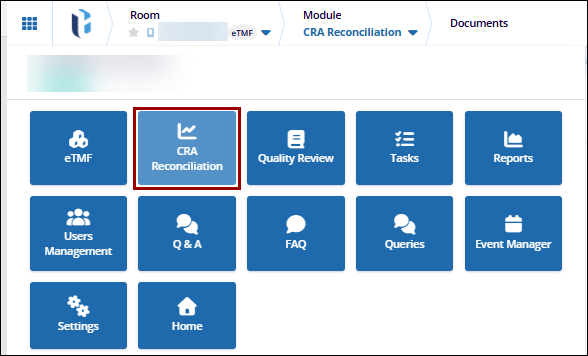- For users to access the CRA Reconciliation module, they must be assigned as a CRA to at least one site in the room.