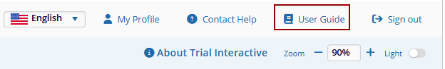 Click the Sign Out button in the top-right corner, as shown in the screenshot below, to log out of your account. However, the user navigates back to the Trial Interactive Log In Page.