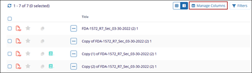 - On the Manage Columns screen, perform the following: