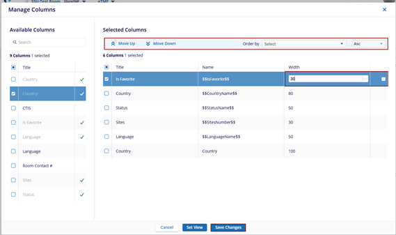 - In the Selected Columns section, select a column and click on the Move Up and Move Down arrows to re-arrange the order of the columns.