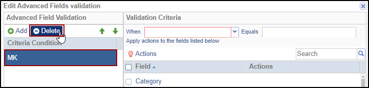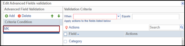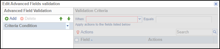 - Click Add in the Advanced Fields Validation panel on the left to add