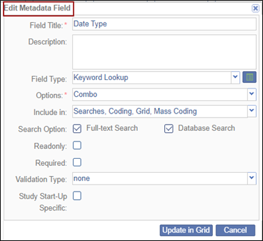 - Make the required changes in the available fields in the Edit Metadata Field pop-up window
