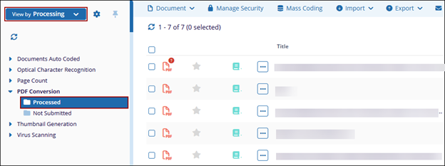 - Expand the PDF Conversion folder and select the Processed sub-folder
