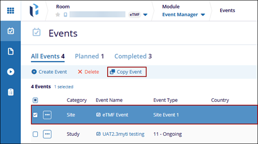 - Select an event from the grid and click the Copy Event button from the